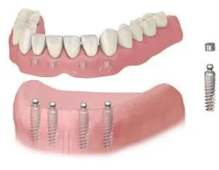 Dental implants are a special way to replace missing teeth. Instead of getting one implant for each missing tooth, a few implants (usually 4 or more) are placed in your jaw to support a full set of new teeth. It's like building a strong bridge with solid support beams, making sure your new teeth are stable and won't move around.